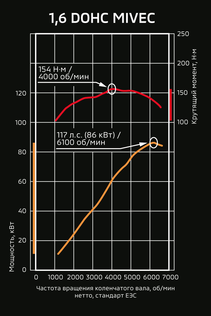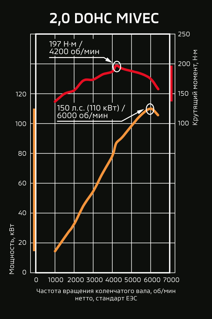 DOHC (два верхних распредвала) с электронной системой управления фазами газораспределения MIVEC, с раcпределенным впрыском ECI-Multi, привод ГРМ-цепь |